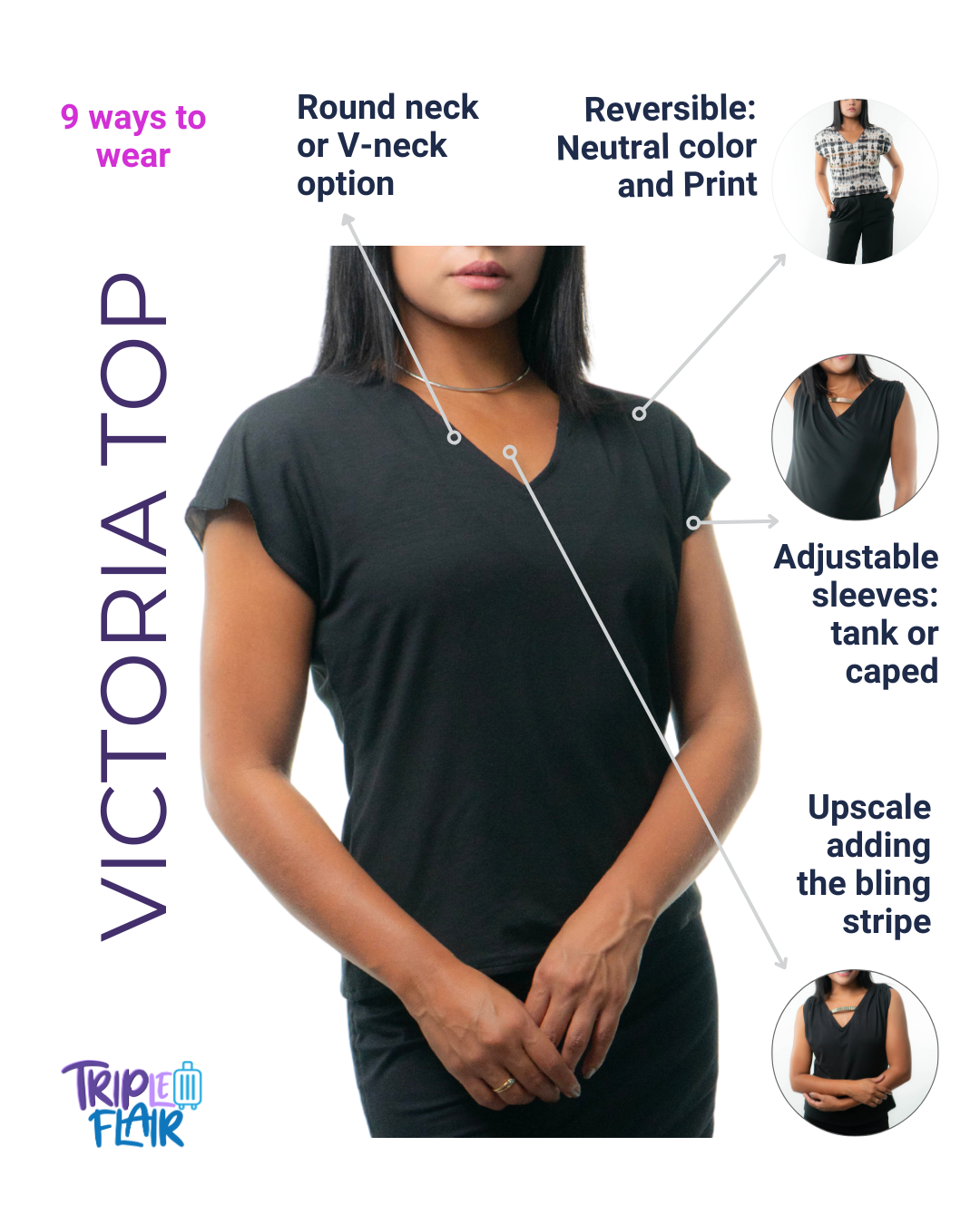 VICTORIA Top: 9 in 1. Schwarz/Tie Dye Braun